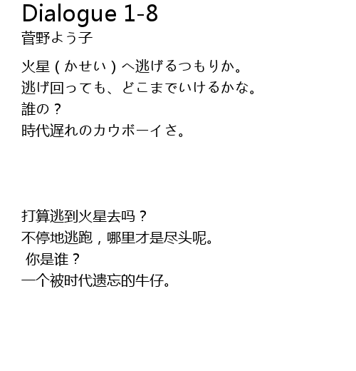 | Song | Dialogue 1-8 |