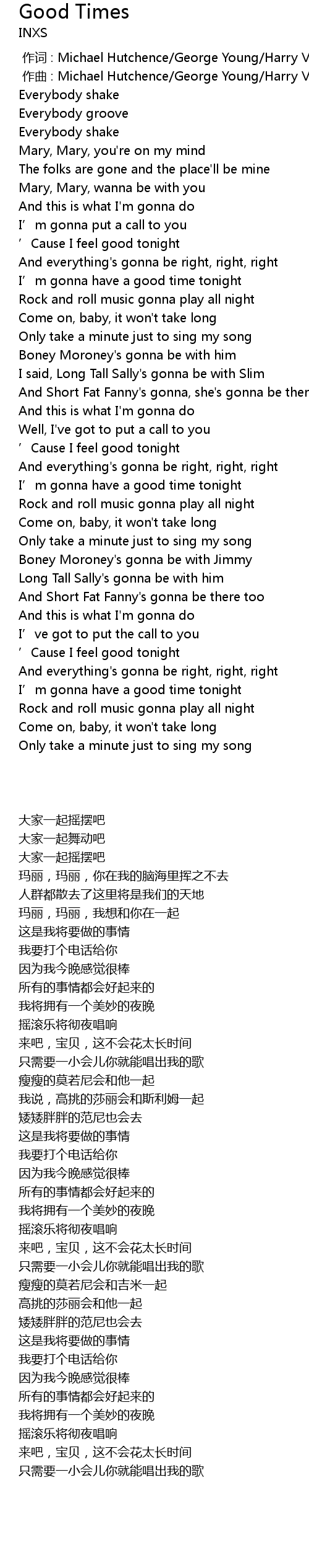 | [00:00.000] | 作词 : Michael Hutchence/George Young/Harry Vanda/Kirk Pengilly |