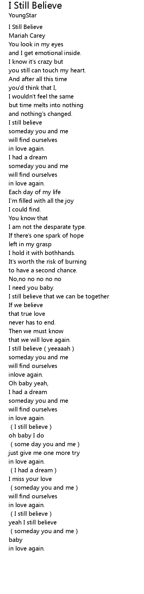 | [00:01.47] | I Still Believe |