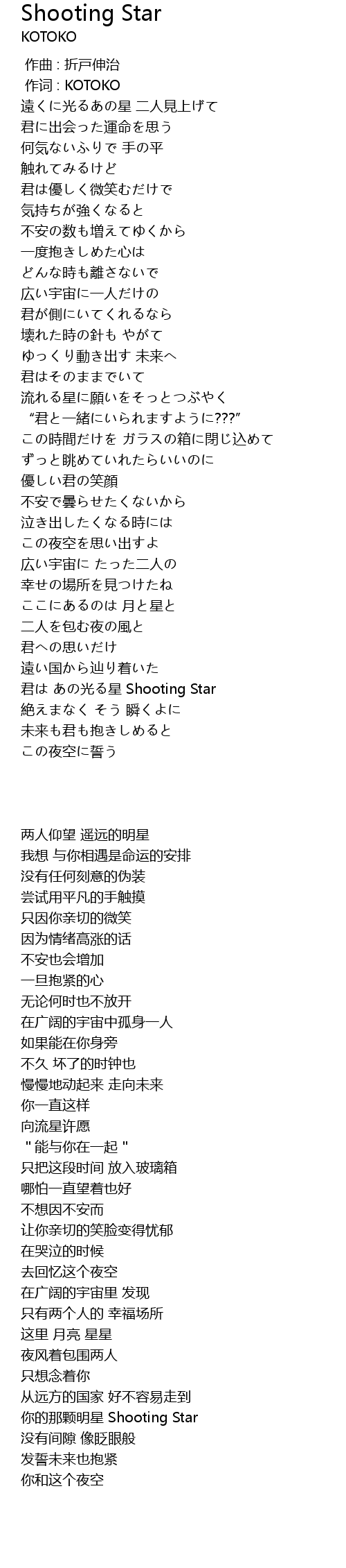 | [03:51.990] | 君は あの光る星 Shooting Star |