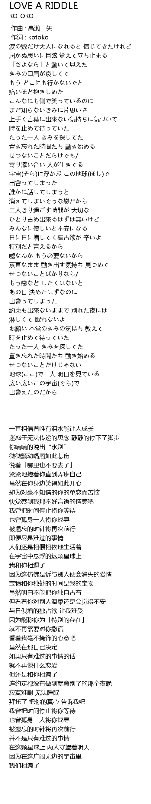 | [00:01.00] | 作词 : kotoko |