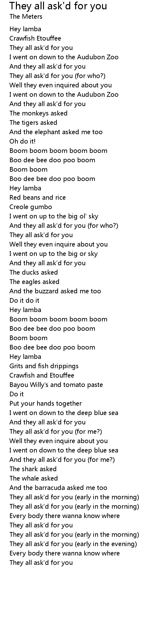 And they all ask'd for you (for who?) |