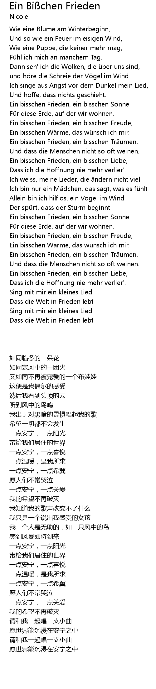 | [00:51.010] | Ein bisschen Frieden, ein bisschen Sonne |