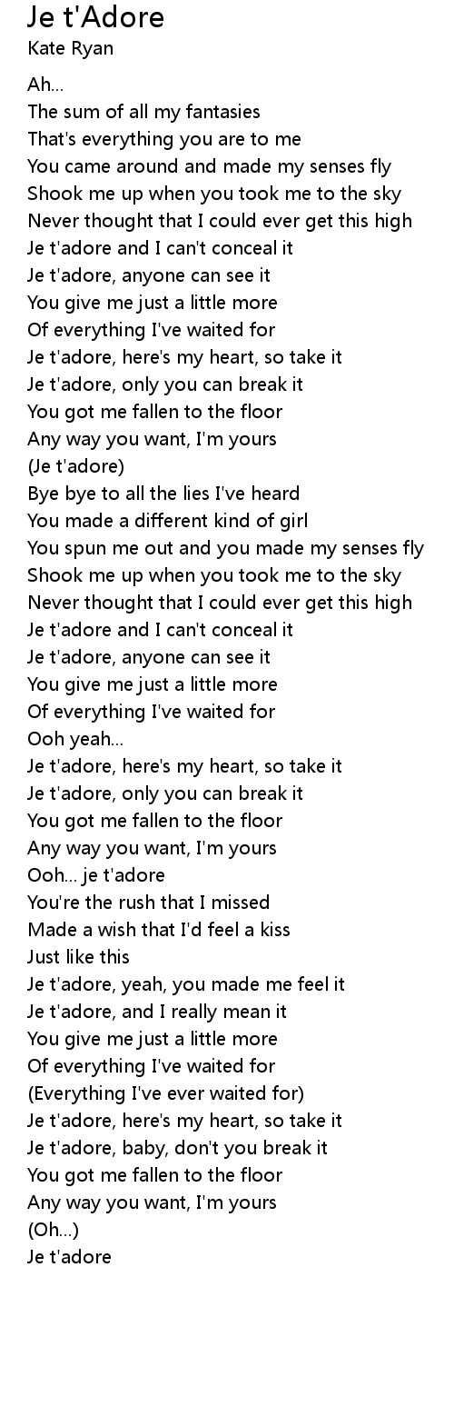 Je t'adore, here's my heart, so take it |