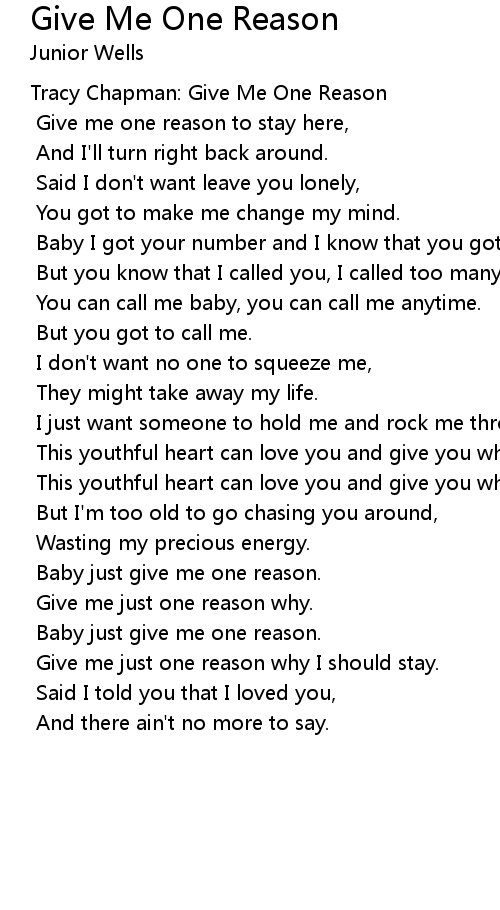 Baby just give me one reason. |
