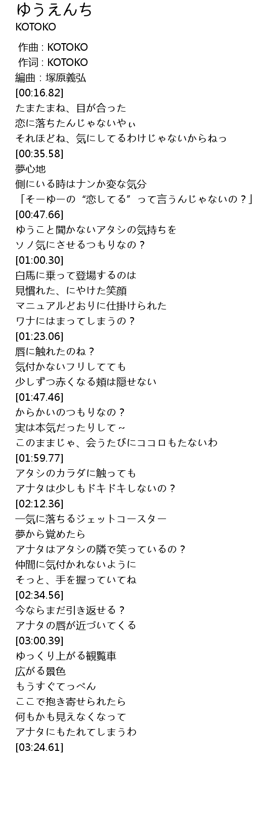 | [03:00.72] | ゆっくり上がる観覧車 |