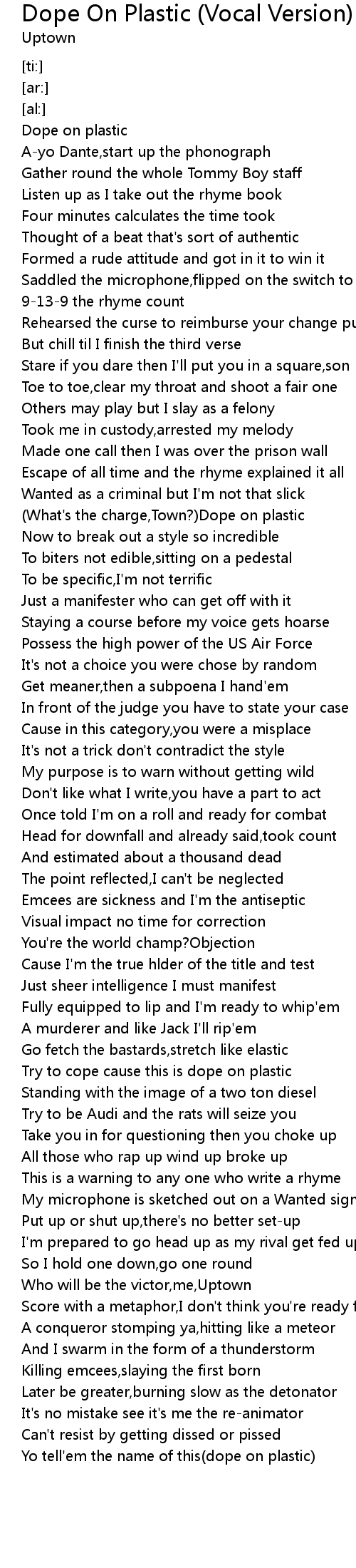 Yo tell'em the name of this(dope on plastic) |