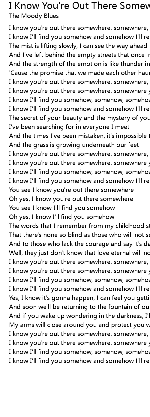 I know you're out there somewhere, somewhere, somewhere |
