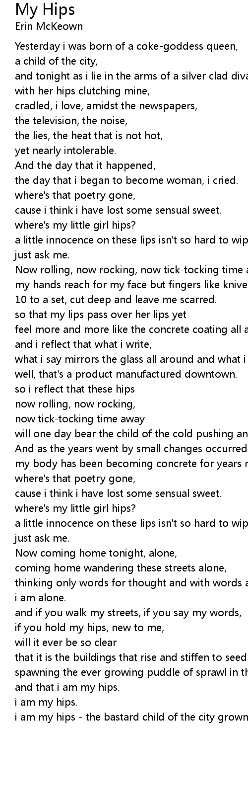 i am my hips - the bastard child of the city grown. |