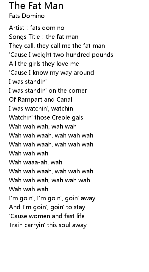 | Songs Title: the fat man | |