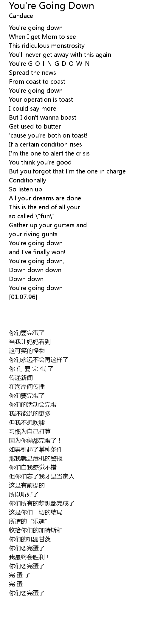 You're G-O-I-N-G-D-O-W-N |