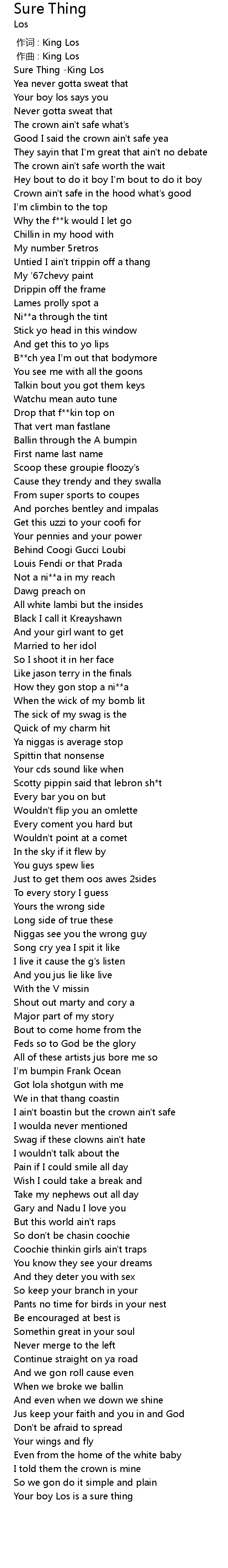 | [00:08.320] | Good I said the crown ain' t safe yea |
