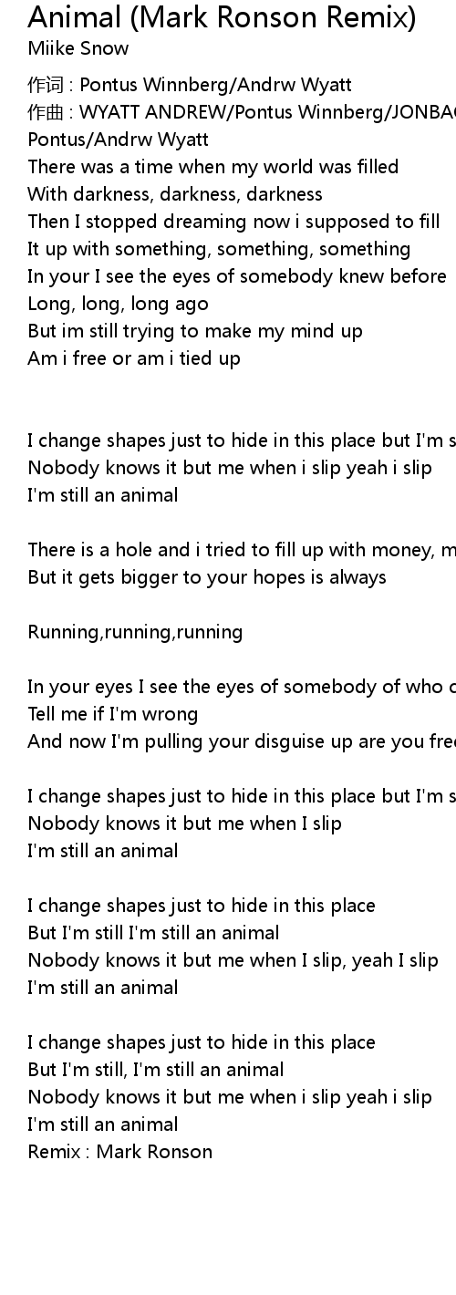 | I change shapes just to hide in this place but I' m still I' m still an animal | |