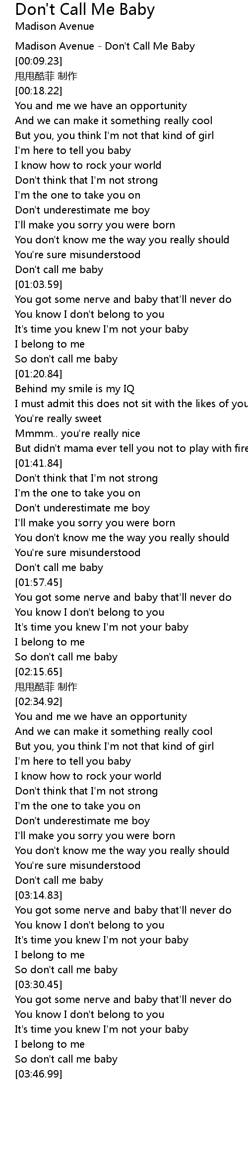 | [01:55.71] | Don't call me baby |