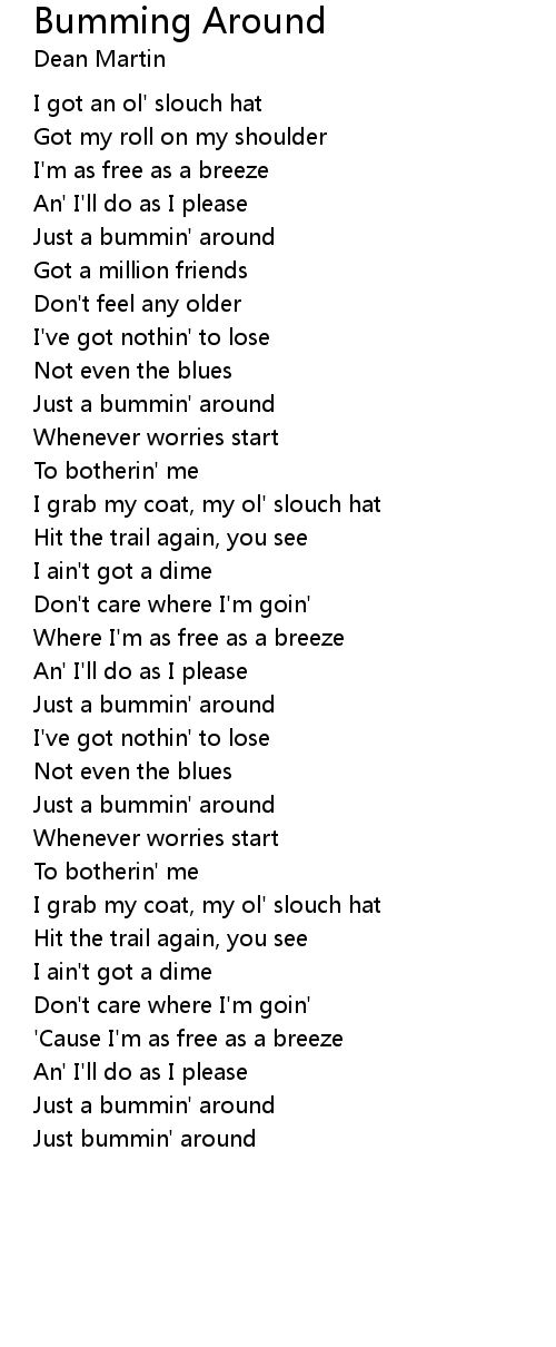 Just a bummin' around |