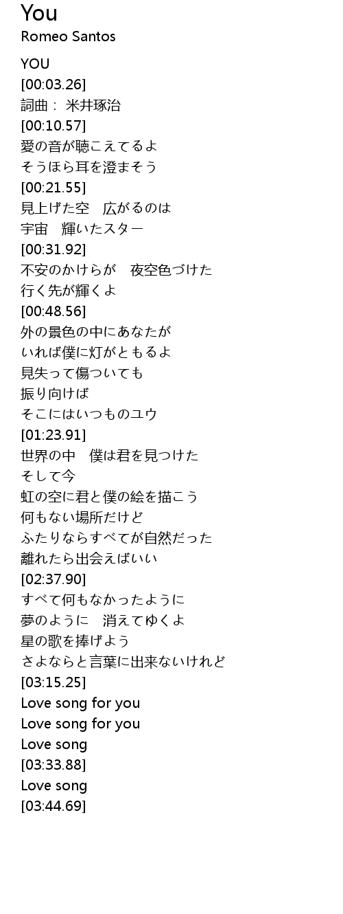 | [02:00.88] | 世界の中 僕は君を見つけた |