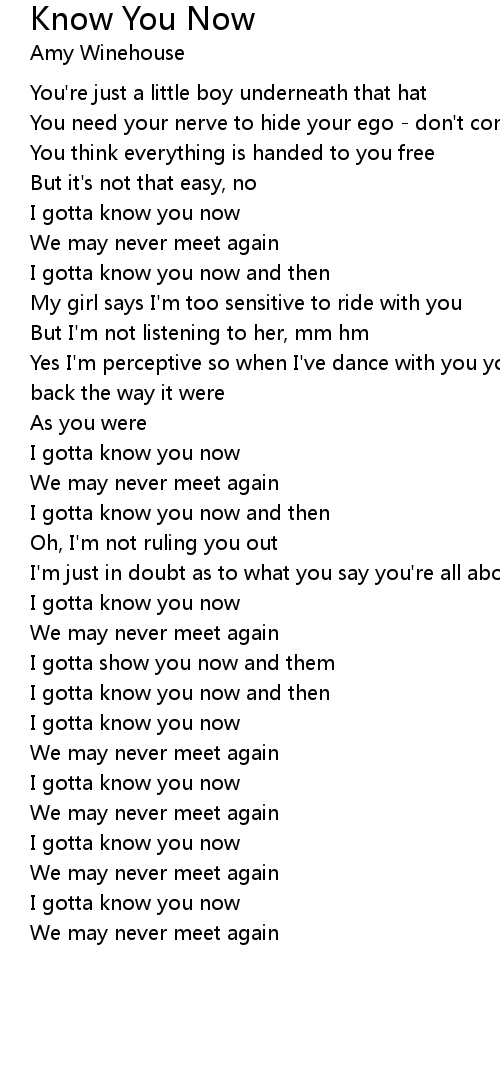 I gotta know you now |