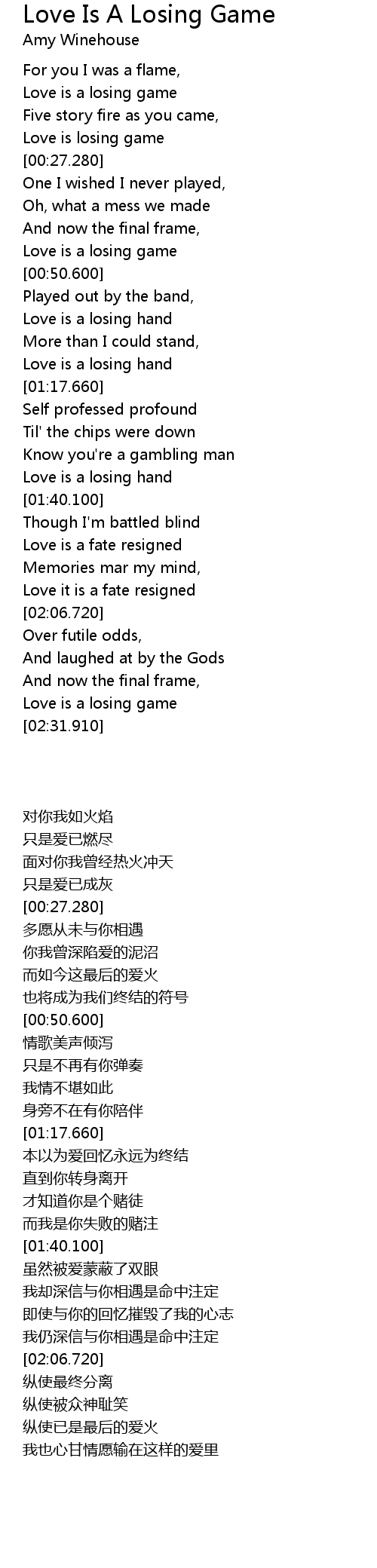 Love is a losing game |