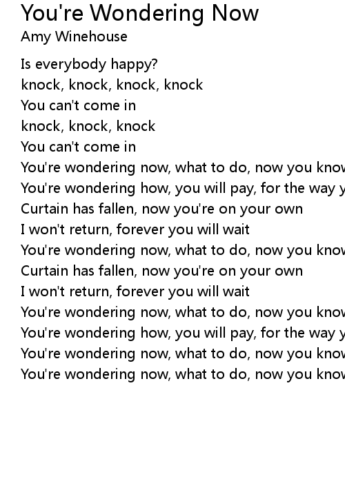 You're wondering now, what to do, now you know this is the end |
