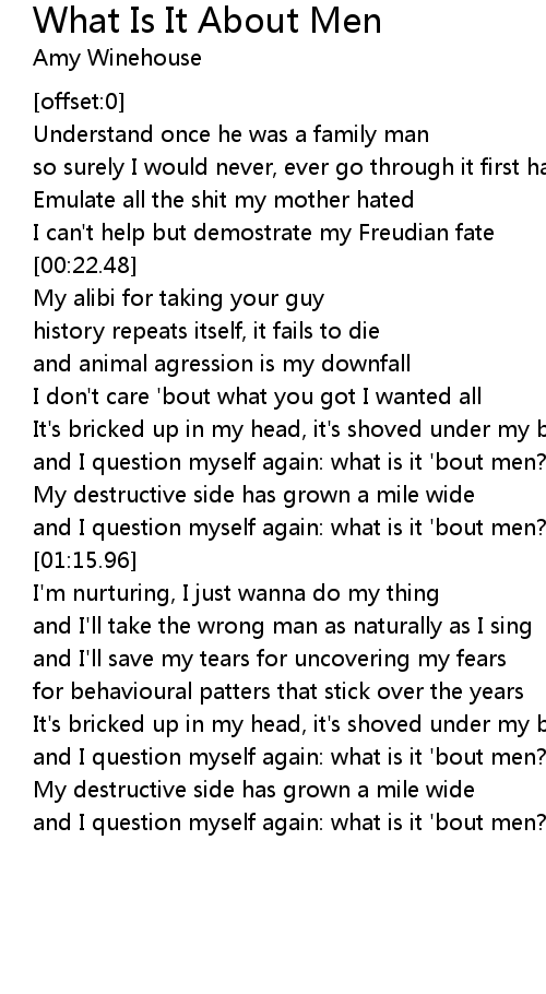 and I question myself again: what is it 'bout men? |