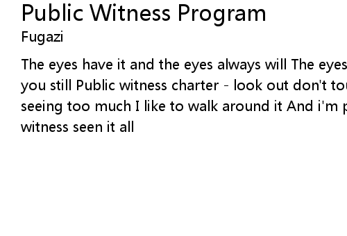 | The eyes have it and the eyes always will The eyes have it and they're watching you still Public witness charter - look out don't touch Public witness says he's seeing too much I like to walk around it And i'm paid to stand around Public witness seen it all |