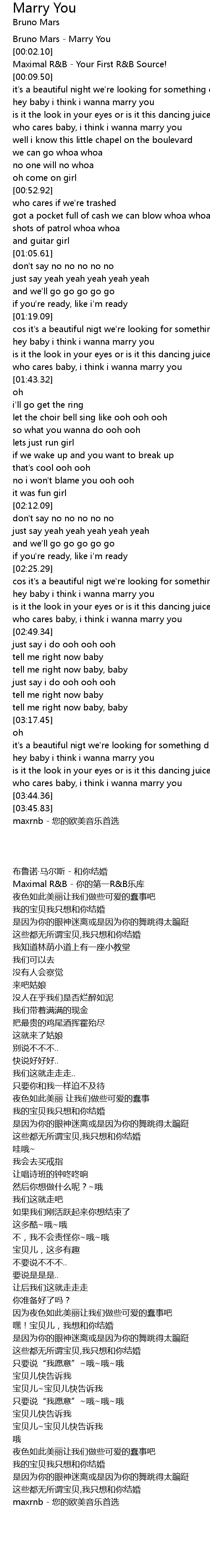| [00:01.00] | Bruno Mars - Marry You |