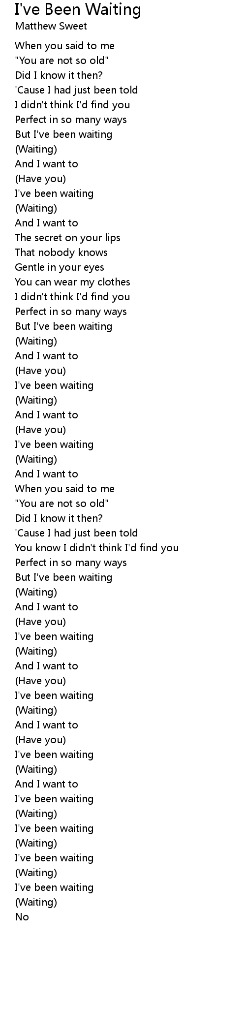 But I've been waiting |