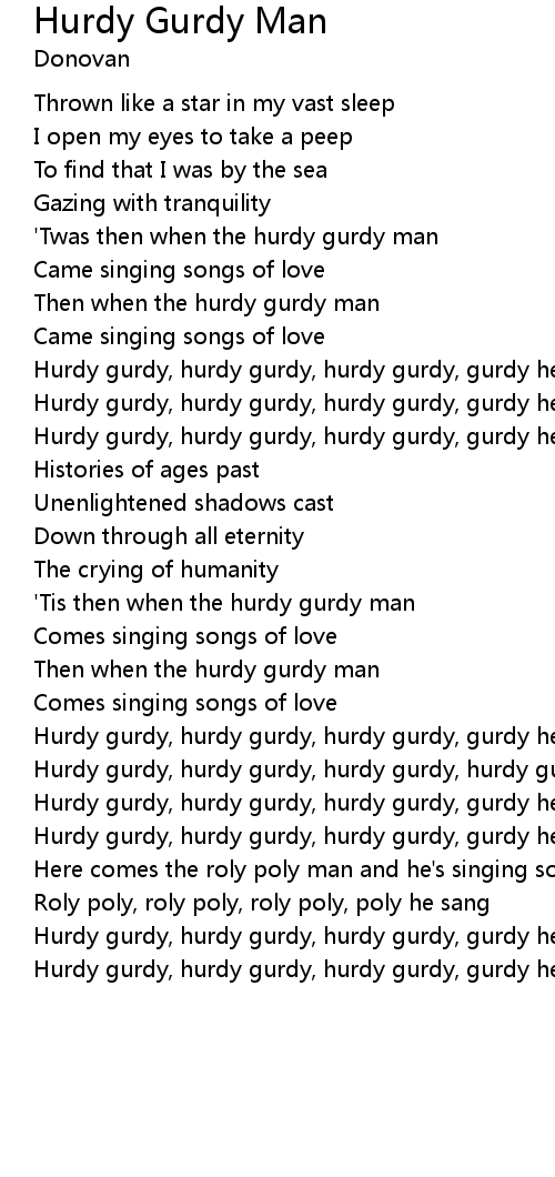 Hurdy gurdy, hurdy gurdy, hurdy gurdy, gurdy he sang |