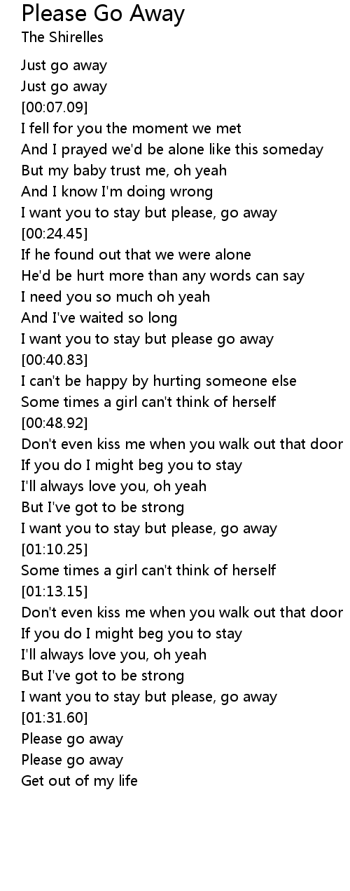 I want you to stay but please go away |