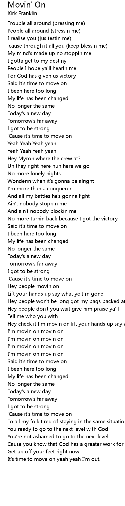 Hey check it I'm movin on lift your hands up say what yo I'm gone |