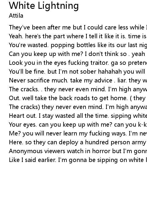 | Like I said earlier. I'm gonna be sipping on white lightning |