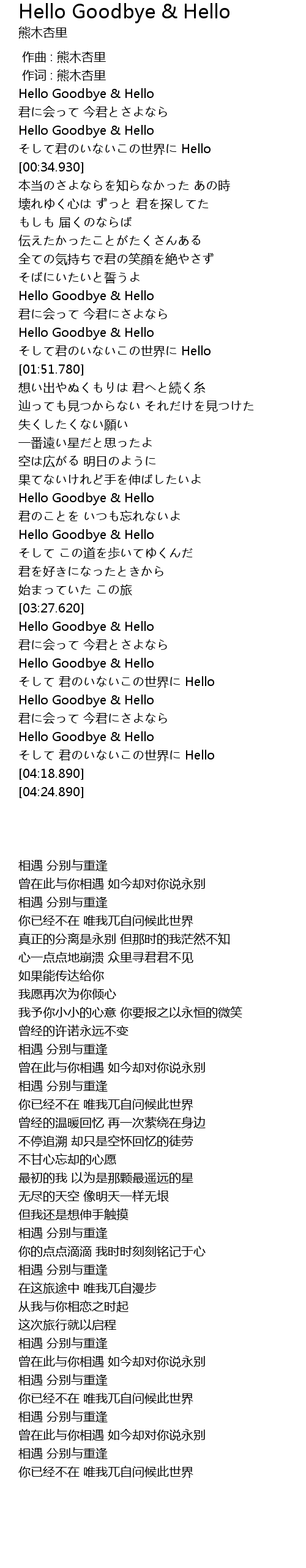 | [01:44.100] | そして君のいないこの世界に Hello |