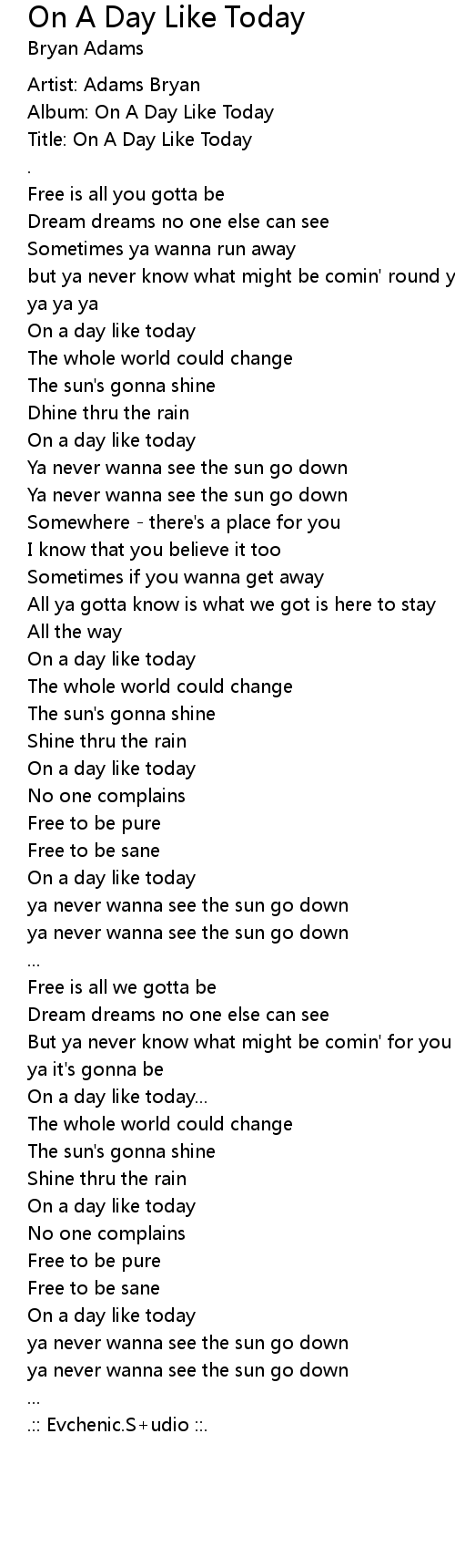 Title: On A Day Like Today |
