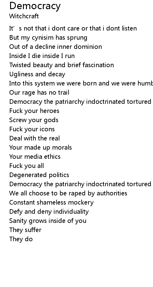 | [02:48.29] | Democracy the patriarchy indoctrinated tortured ones |