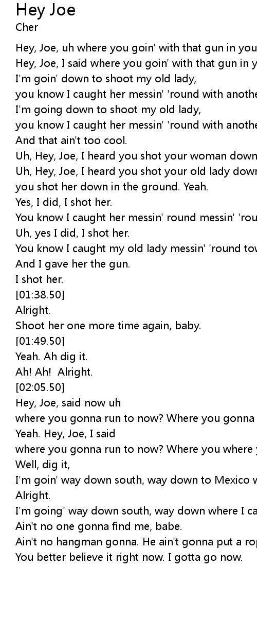 Hey, Joe, I said where you goin' with that gun in your hand? Alright. |
