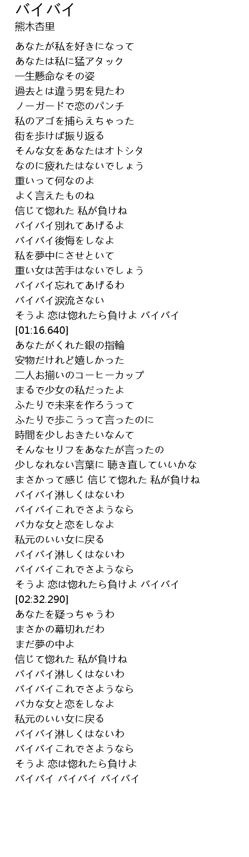 そうよ 恋は惚れたら負けよ バイバイ |