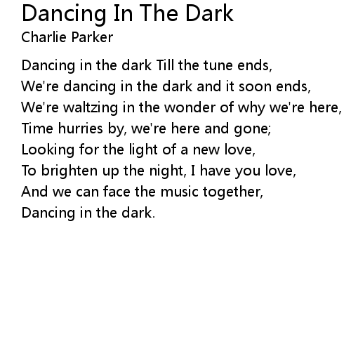 | Dancing in the dark Till the tune ends, | |