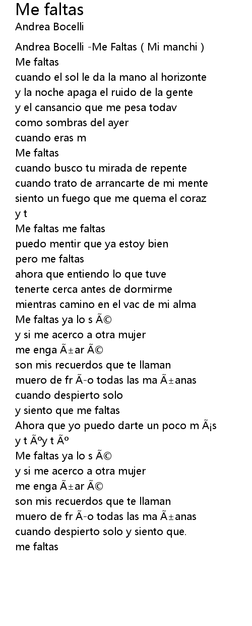 | [00:01.219] | Andrea Bocelli Me Faltas Mi manchi |