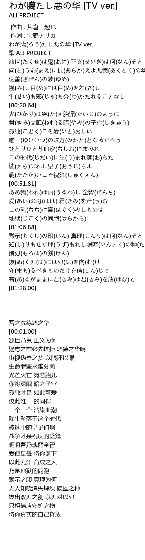| [00:00.00]わが臈(ろう)たし悪の华 [TV ver.] | |