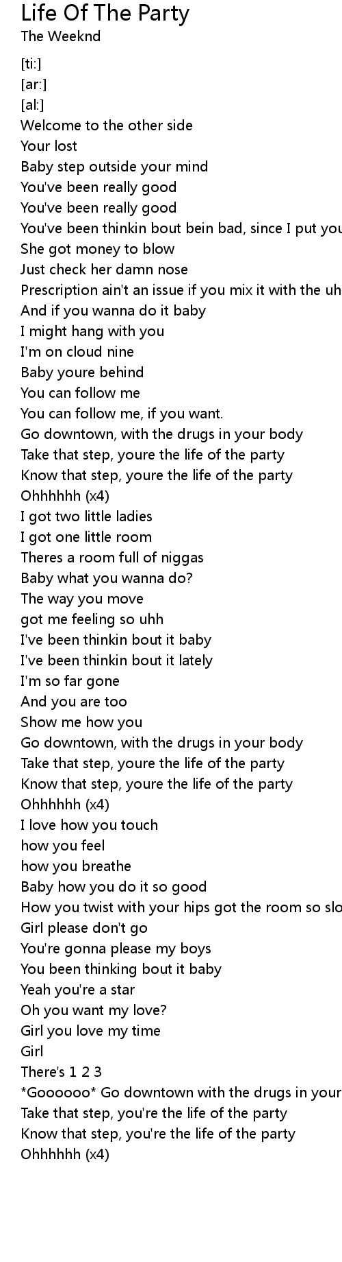 *Goooooo* Go downtown with the drugs in your body |