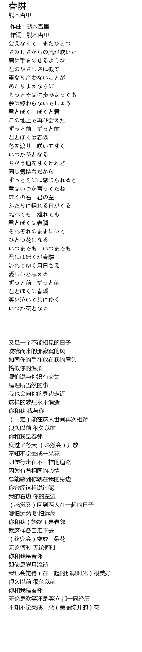 | [03:40.685] | 君とぼくは春隣 |