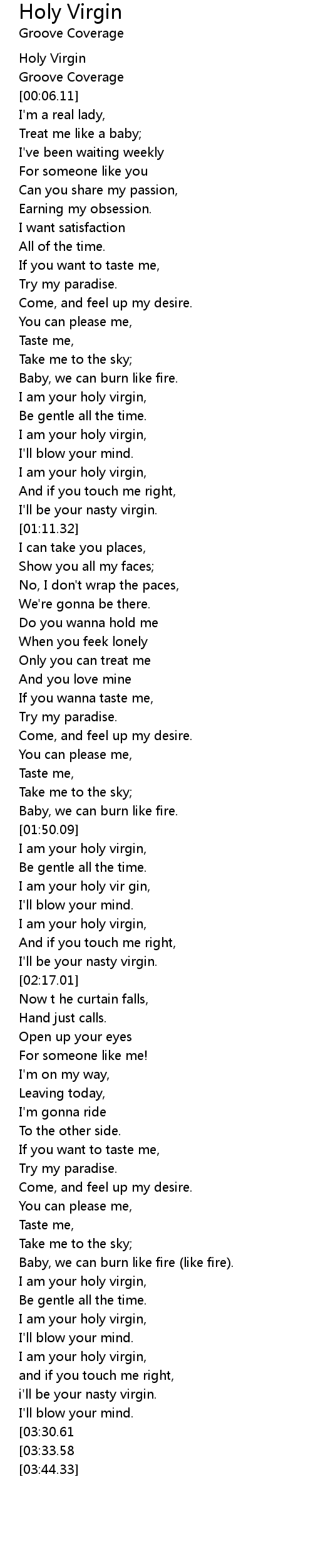 I am your holy vir gin, |