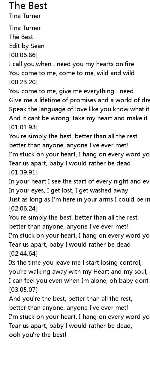 You're simply the best, better than all the rest, |