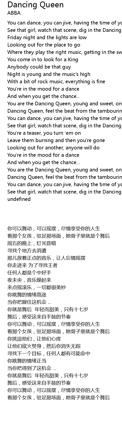 You are the Dancing Queen, young and sweet, only seventeen |