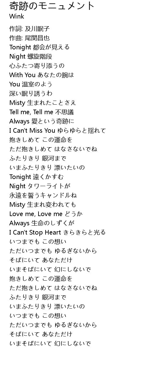 | [02:00.700] | Misty 生まれ変われても |