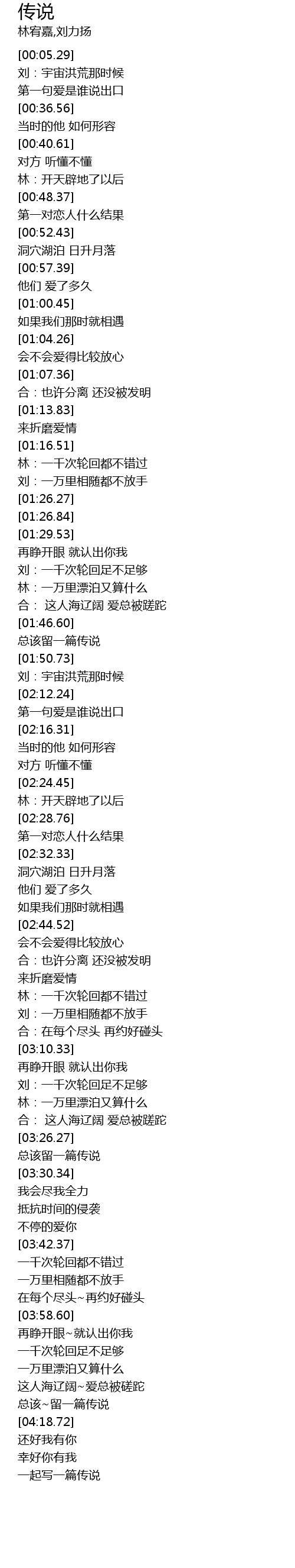 | [04:15.38] | zǒng gāi liú yī piān chuán shuō |