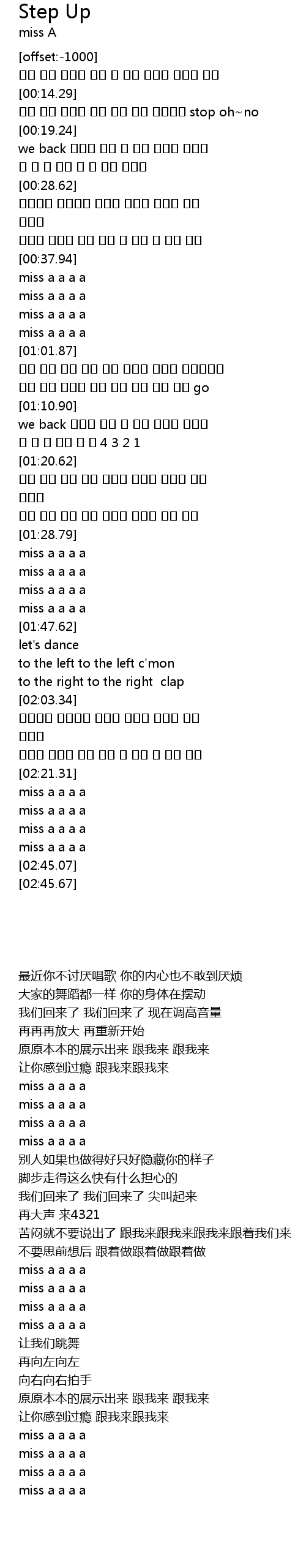 | [00:42.97] | miss a a a a |