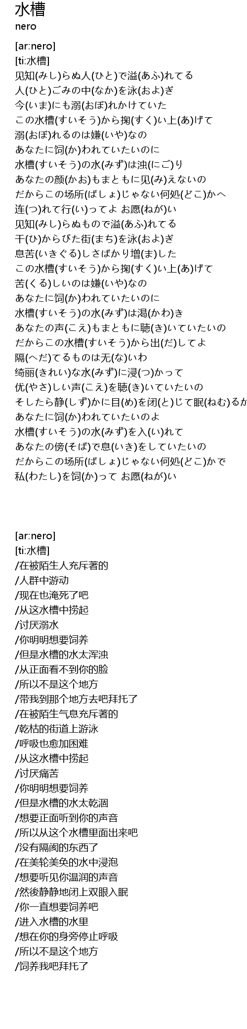| [03:20.16] | 水槽(すいそう)の水(みず)を入(い)れて |
