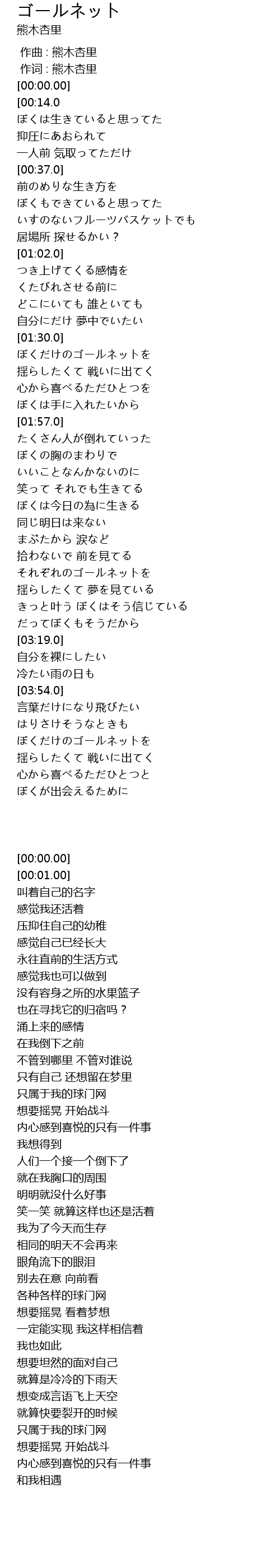 | [02:53.0] | それぞれのゴールネットを |