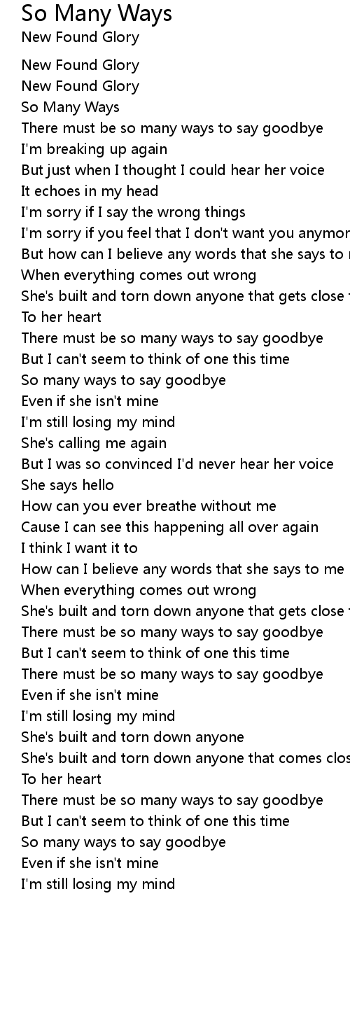 There must be so many ways to say goodbye |